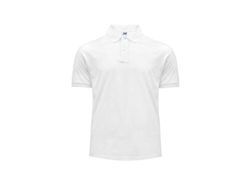 Polo męskie z krótkim rękawem. Zapinane na dwa guziki. Ściągacze na rękawach.