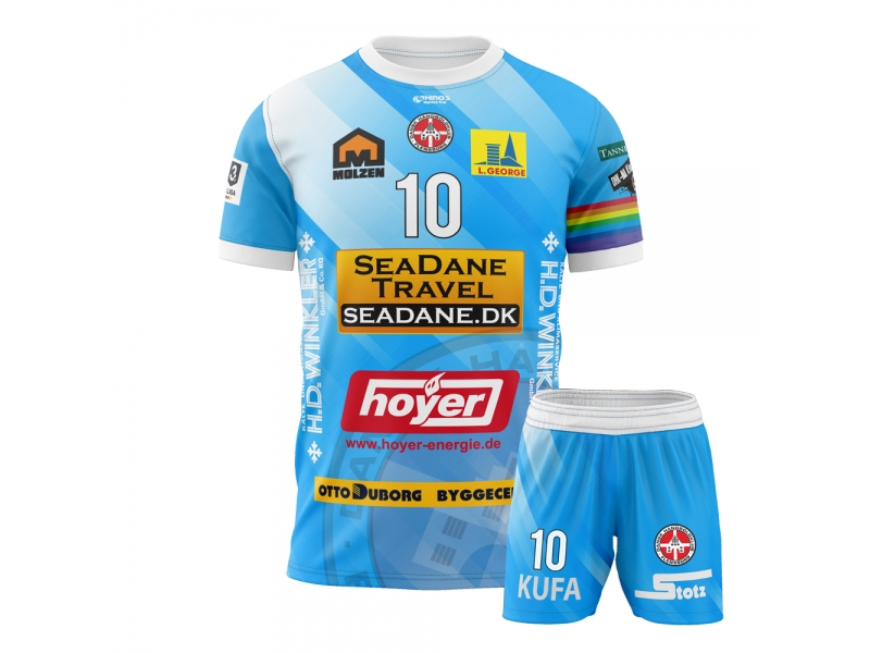 Proponujemy komplet sublimacyjny z grafiką stworzoną specjalnie dla Ciebie. W swojej ofercie posiadamy bogatą ilość projektów graficznych dedykowanych różnym dyscyplinom sportowym (piłka nożna, koszykówka, piłka ręczna, hokej, zapasy, podnoszenie ciężarów, tenis itd.). Dla naszych klientów przygotowujemy zawsze pierwszy projekt graficzny, wraz z poprawkami - GRATIS. Jeżeli jesteś zainteresowany przygotowaniem wizualizacji graficznej dla Twojego klubu - skontaktuj się nami!